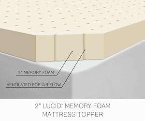 Category: Furniture Vendor: 2" Thick 100% premium memory foam mattress topper Ventilated to increase air flow and regulate sleeping temperature Lucid memor Product Description